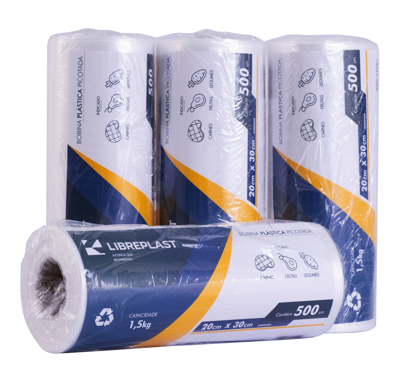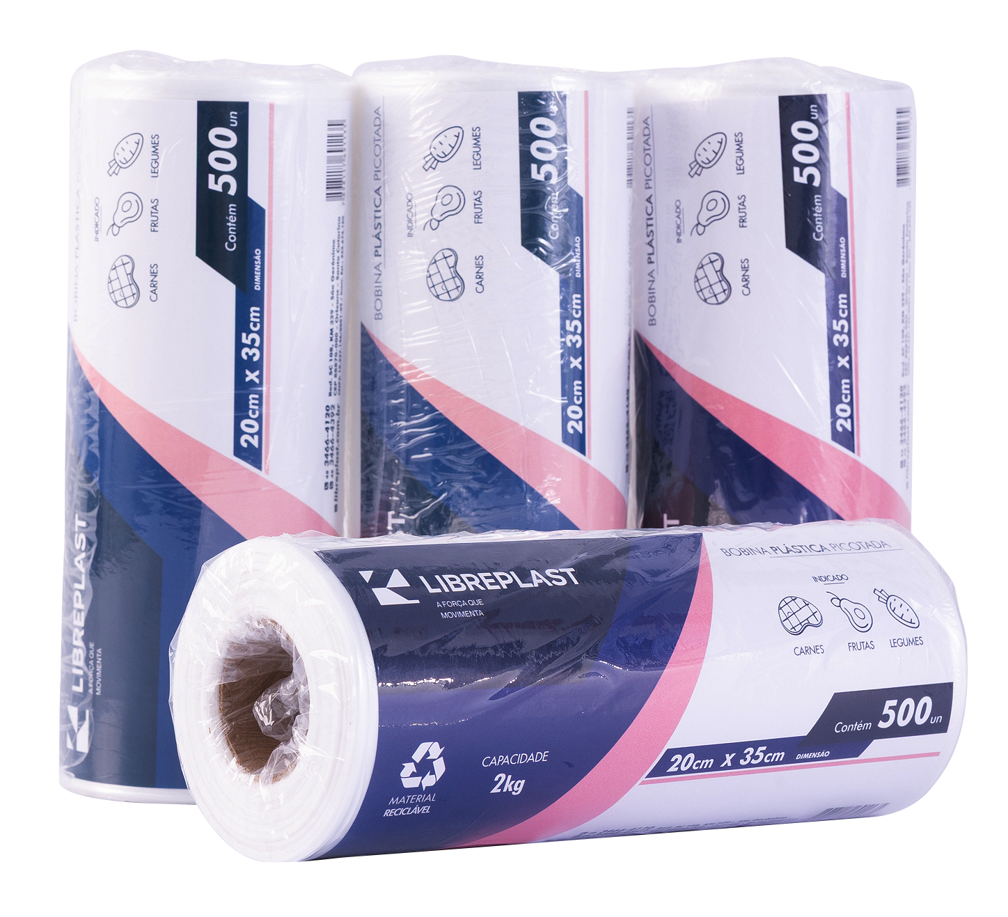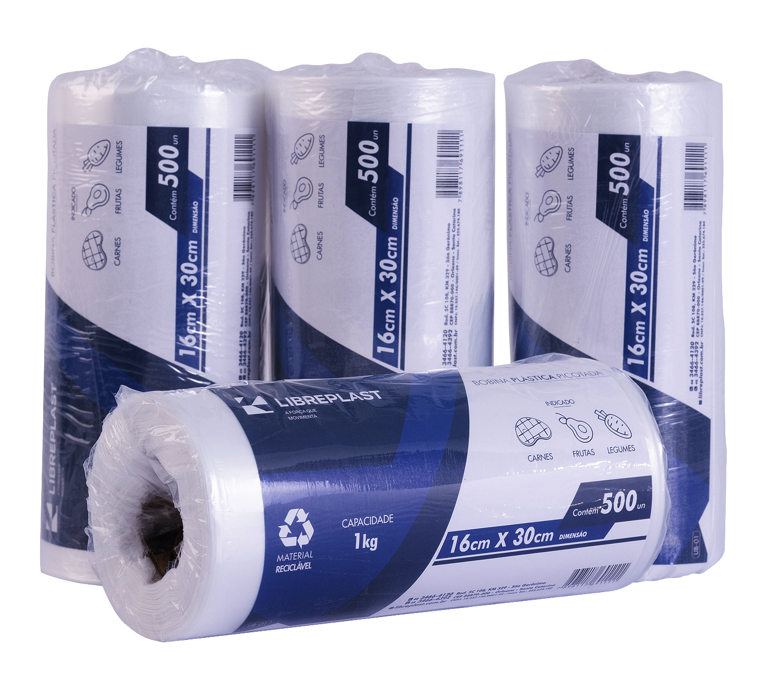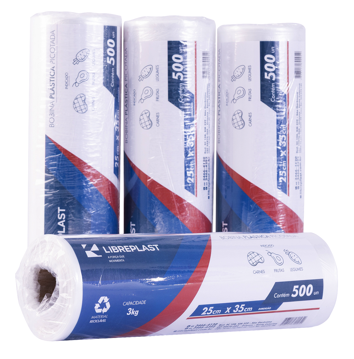 Para otimizar suas vendas e o estoque de seus clientes, a Bobina Picotada LIBREPLAST é vendida por peça, sendo que cada unidade possui uma quantidade padrão de 500 unidades de sacos picotados.